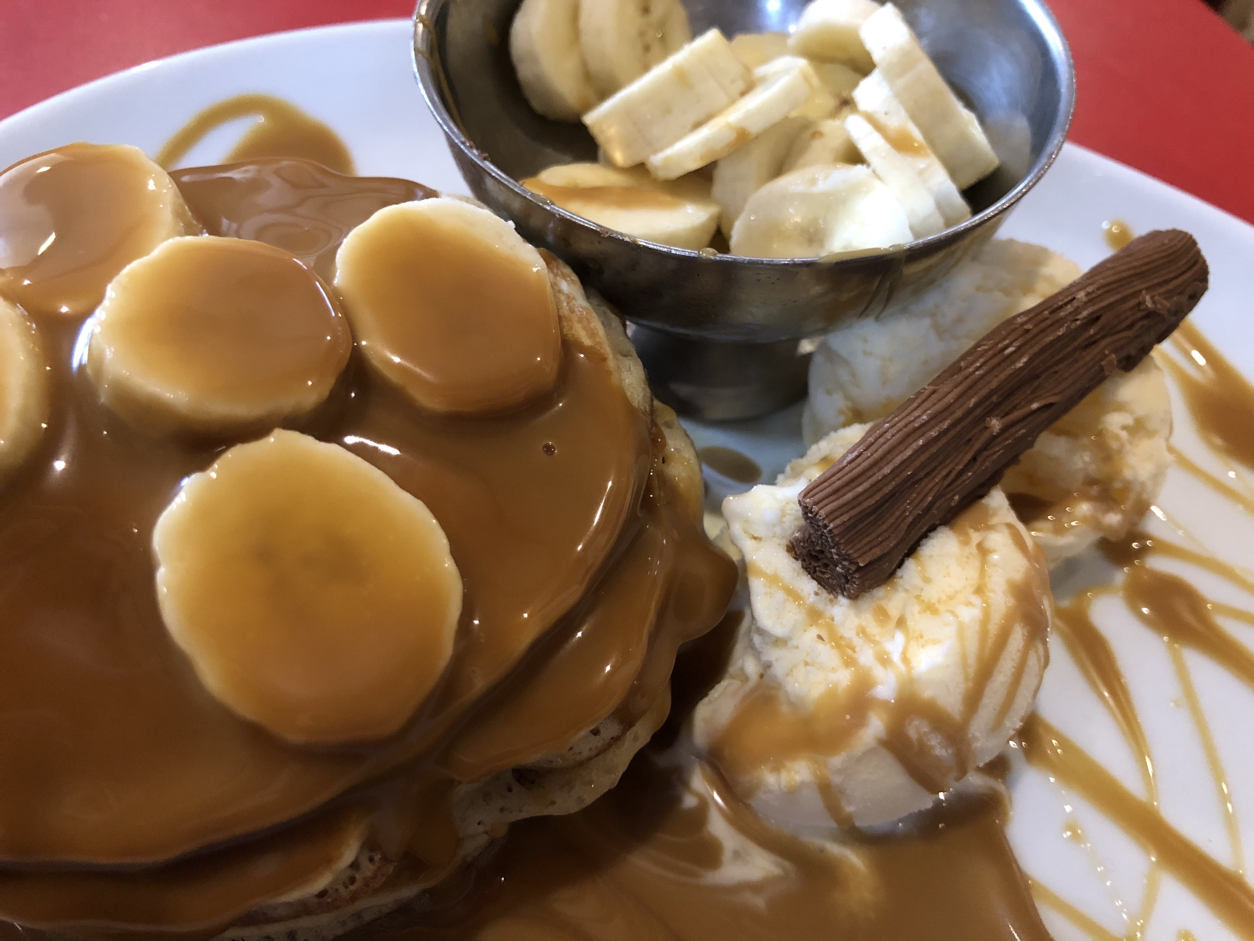 This morning started like most mornings in Scotland: Me, walking through the rain, hunting for breakfast, hoping the sun decides to come out. I followed my G.P.S. to a restaurant that served “Famous Scottish Pancakes.” Upon further inspection- Scottish pancakes taste exactly like the ones we have in America. Still, they were delicious! I chose the “Banoffee Stack”- their tribute to famous banoffee pie, which got its start in Great Brittain. I know you’re curious, so click here: https://en.wikipedia.org/wiki/Banoffee_pie?wprov=sfti1.