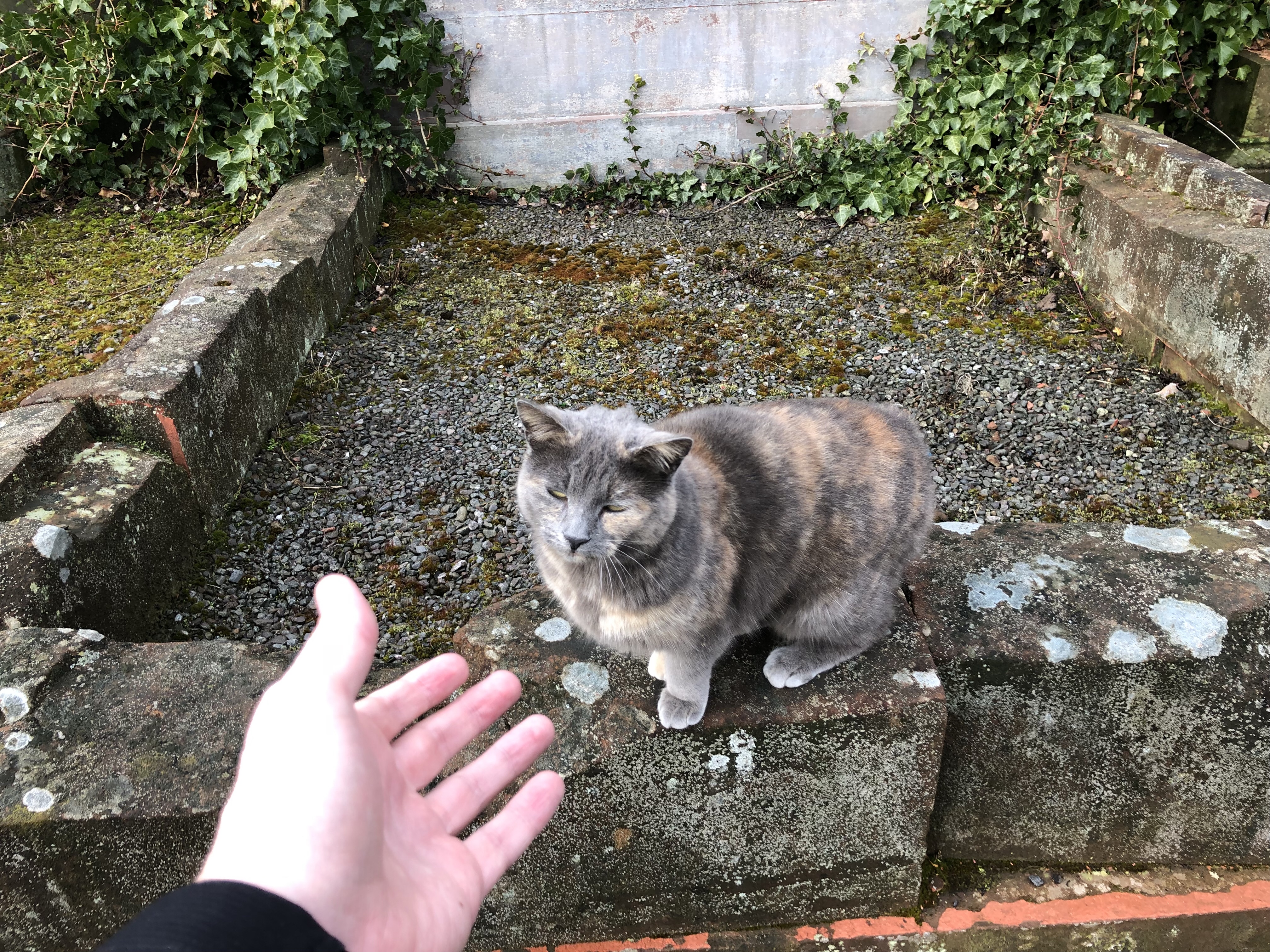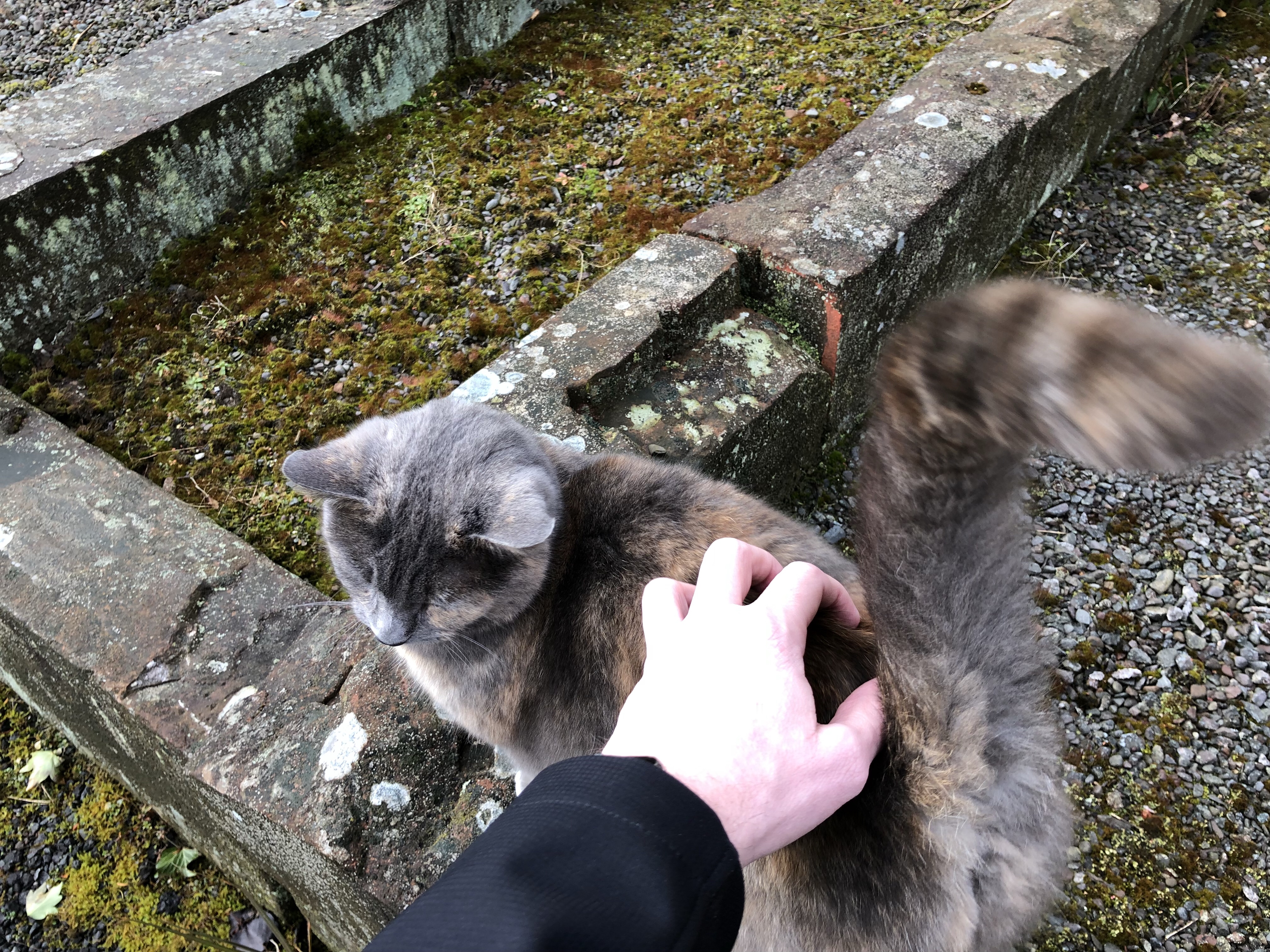 While I explored the graveyard, I was approached by a cat who let me pet him/her for a while. This is not the first time an animal has come to me in a graveyard. Evidence of reincarnation? You decide.