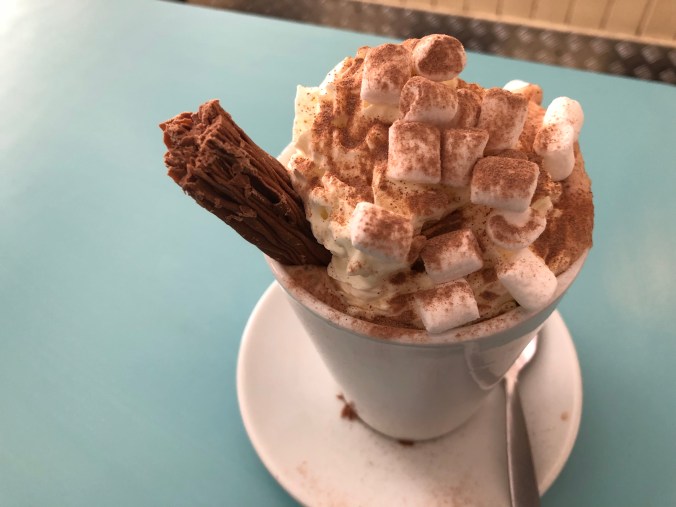 I am off to my next destination- yet another location that I’ve never visited, so I don’t really know what to expect. I’m sipping hot chocolate (shocker) on a train, and have about an hour until I will make a transfer in Kilmarnock, then head to Ayr, on the coast. Jonny texted me from Chicago and told me that I should do a hot chocolate collage and frame it. He may be on to something.