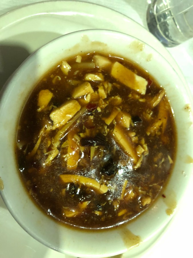 Tonight I’m laying in bed, deciding what movie to watch. I had an amazing dinner at the hotel here, which was a three-course meal. First, they brought me some chicken skewers in some kind of peanut sauce. It tasted very “Thai”. The second was the main course, which was a pulled lamb over couscous, and dessert was a really good caramel Oreo cheesecake.