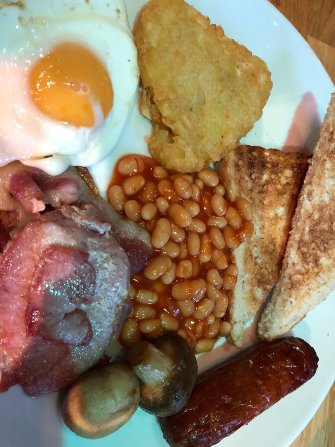 I checked out of my hotel this morning and headed to the train station. I had plenty of time, so I headed further into town, back to the restaurant where I got the pancakes yesterday. I ordered a traditional Scottish breakfast, minus the black pudding and the haggis.