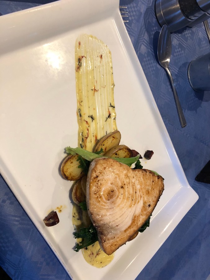 I found a small steak/seafood restaurant right on the beach. I ordered a swordfish steak. So good! It had little pieces of chorizo sausage and the green purée that they used to decorate the plate was pretty awesome! I wish I would have taken a picture of the front of the restaurant because it was incredible! I will definitely be back on future visits to Thurso.