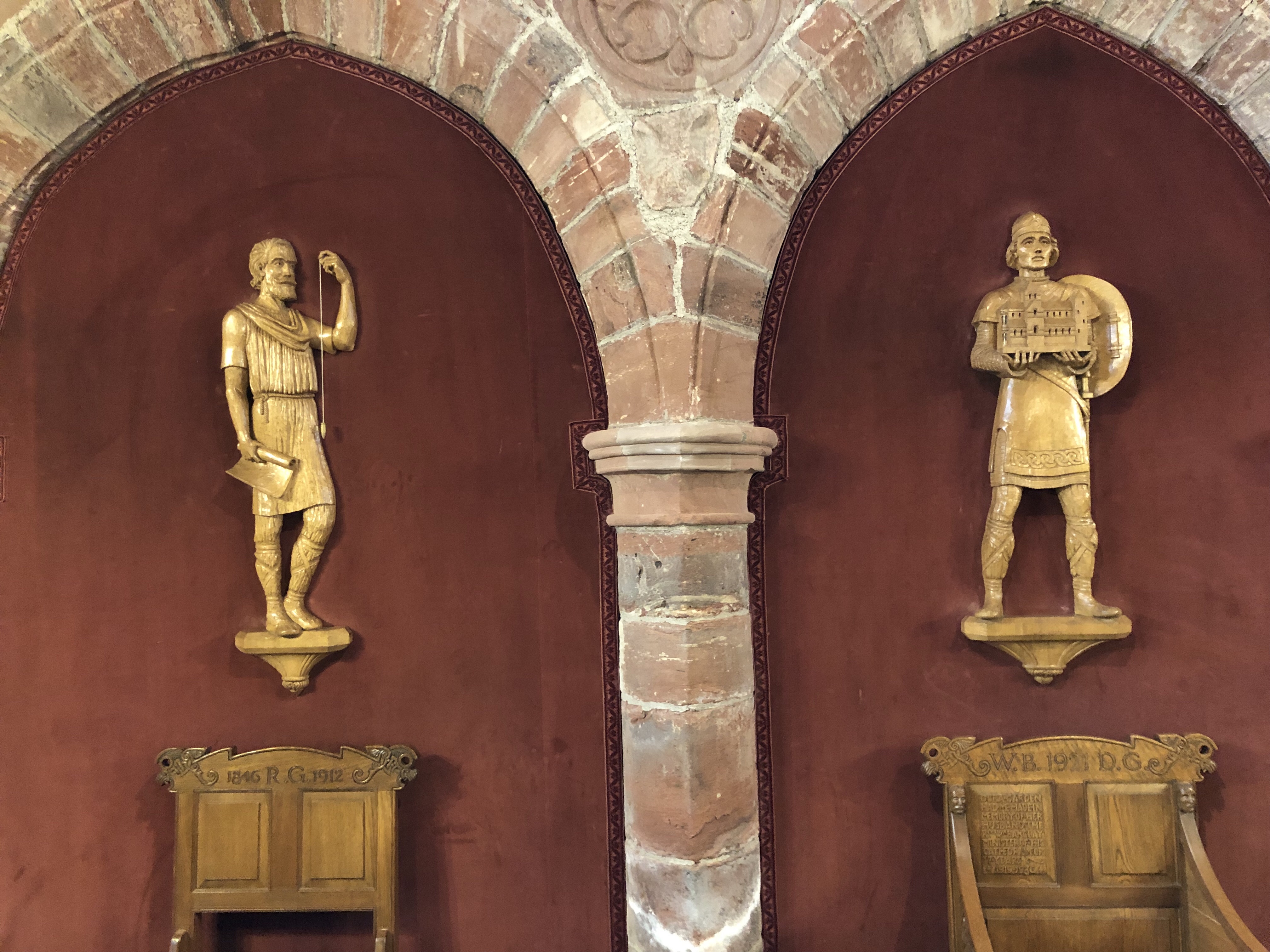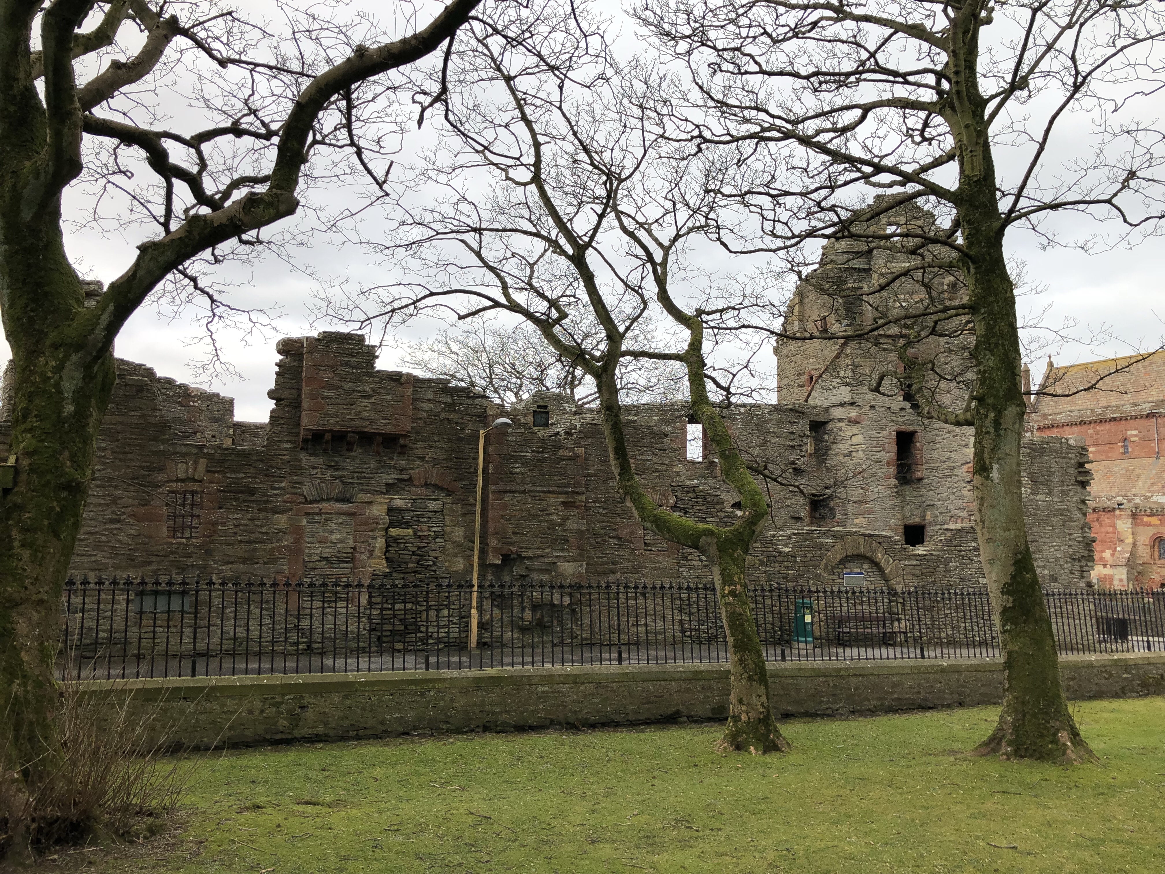 Right across the street, there is the remains of two Mideival palaces. One belonged to the Earl, and the other belonged to the Bishop. Back in those days, the Bishop was a very powerful man. They wanted him to live in very rich surroundings to match his status. Also he would use his palace to entertain royalty on occasion.